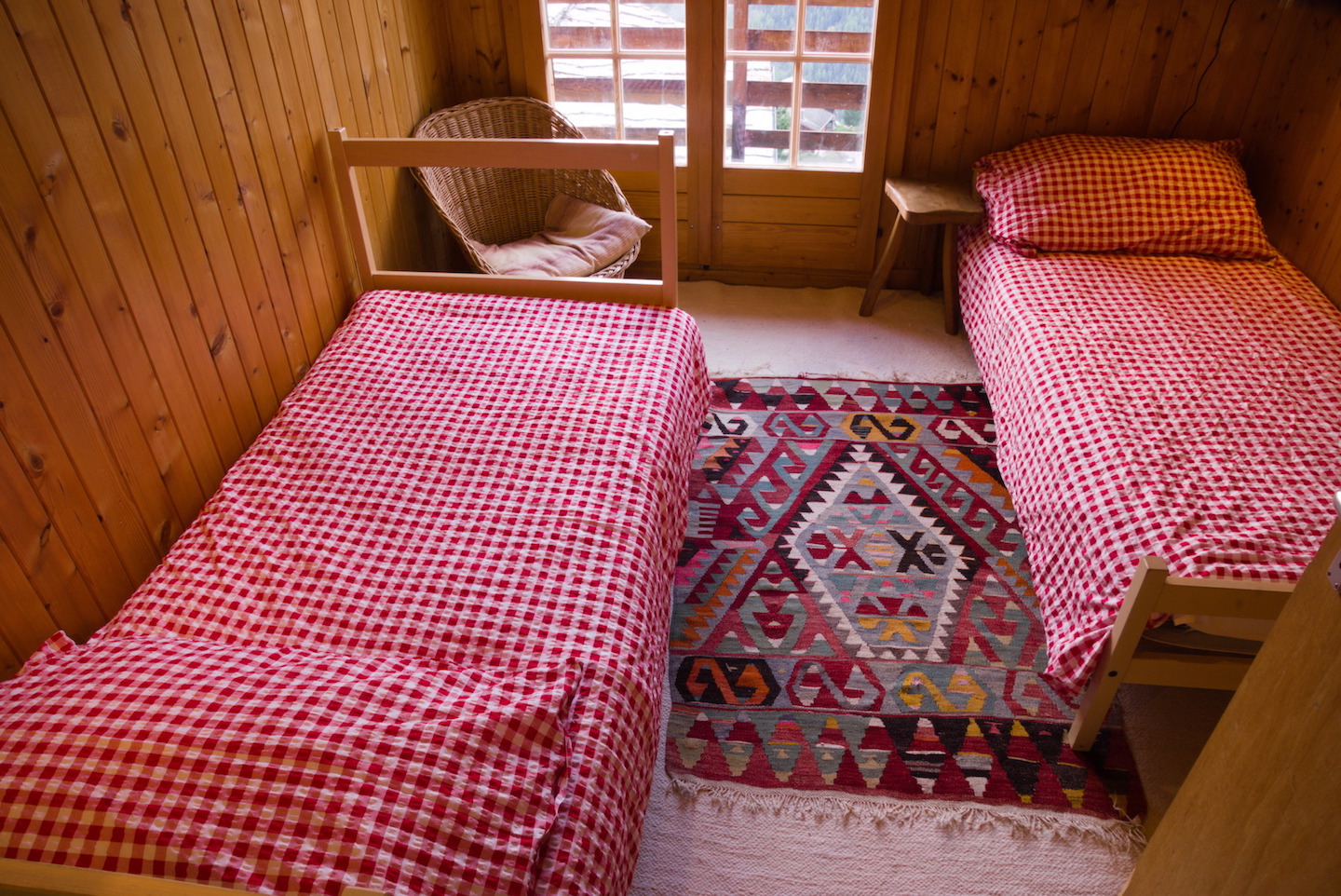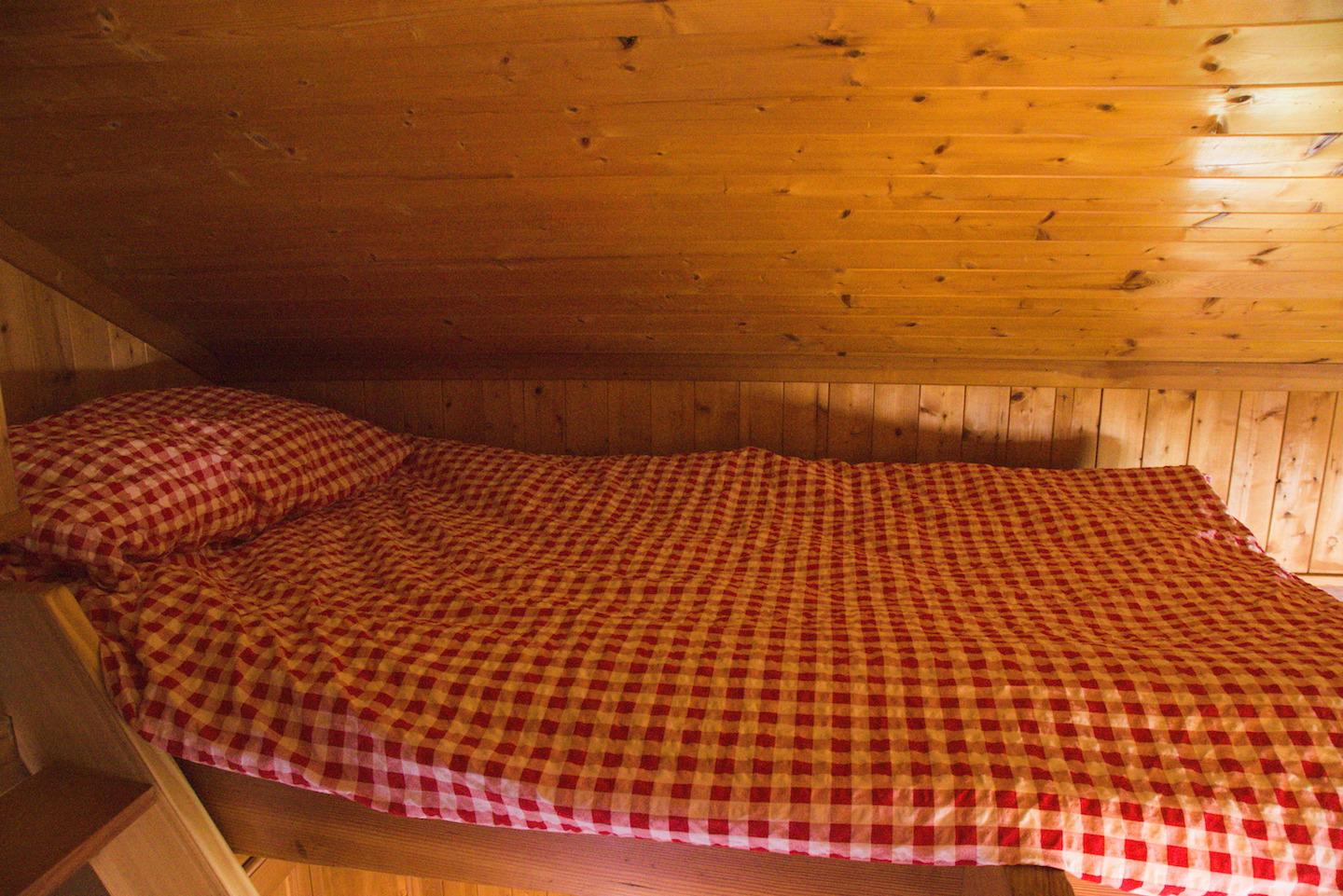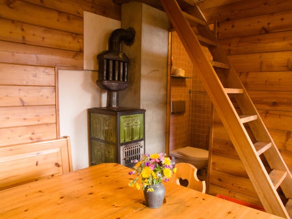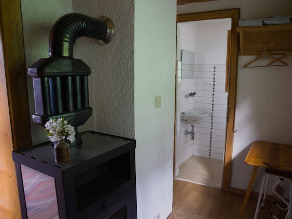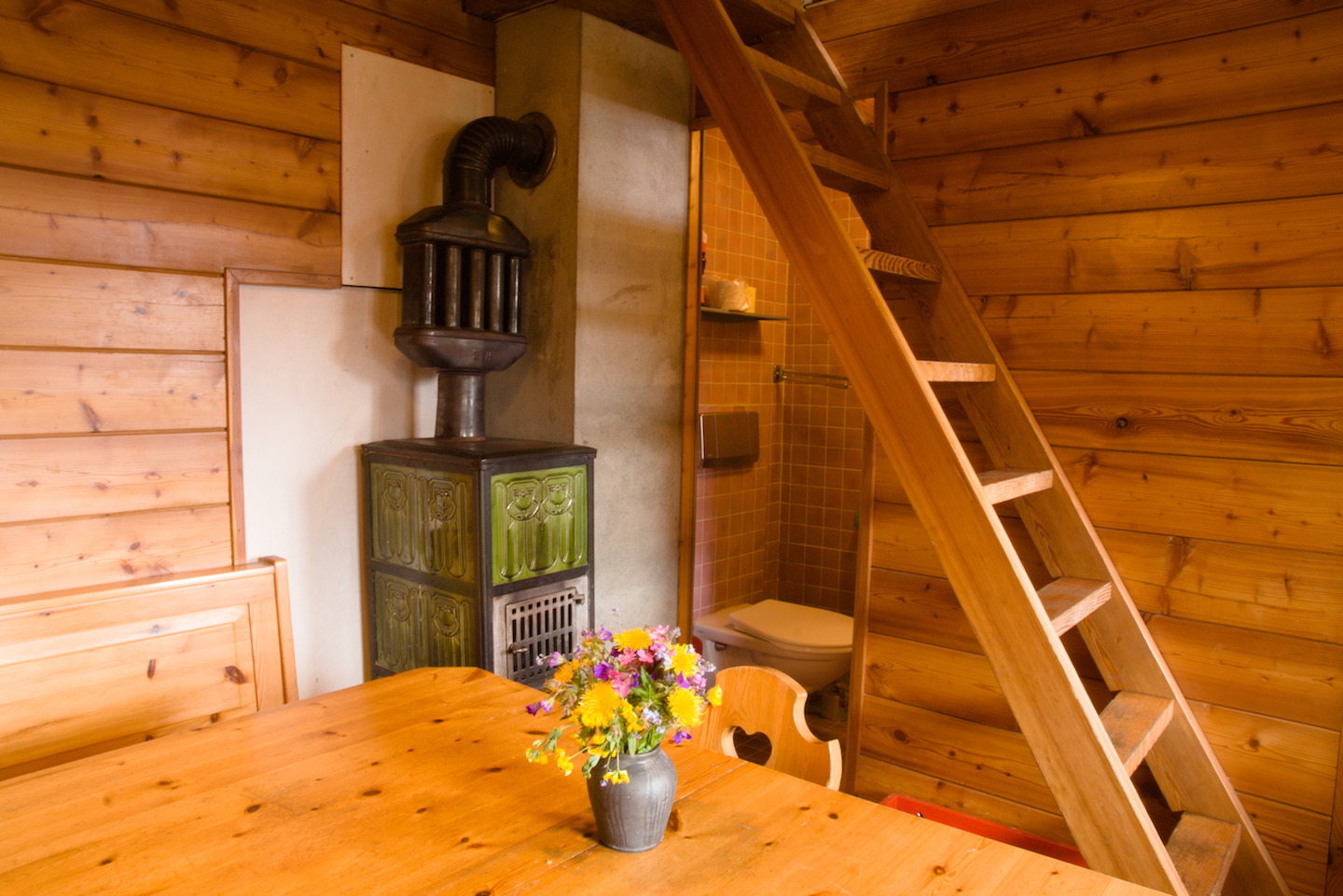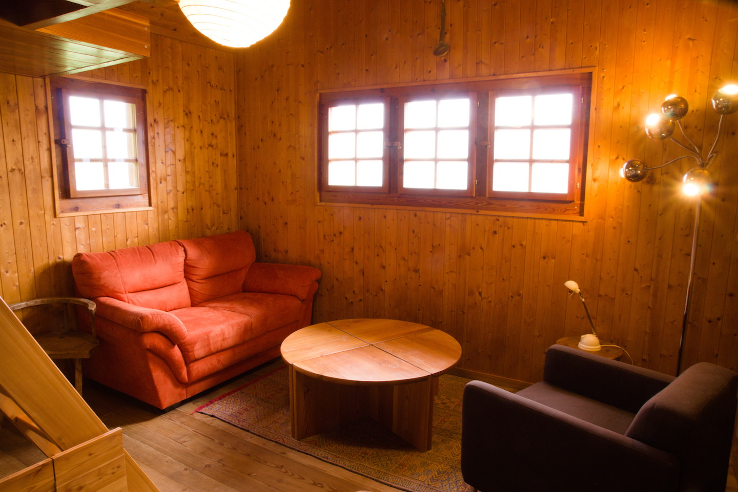 A typical chalet of the valley, ideal for a couple on a romantic getaway, but can accommodate up to 4 people (all sleep in the same space). There is a kitchen, a dining room and a WC-shower on the ground floor, and a living room with an open mezzanine on the first floor.