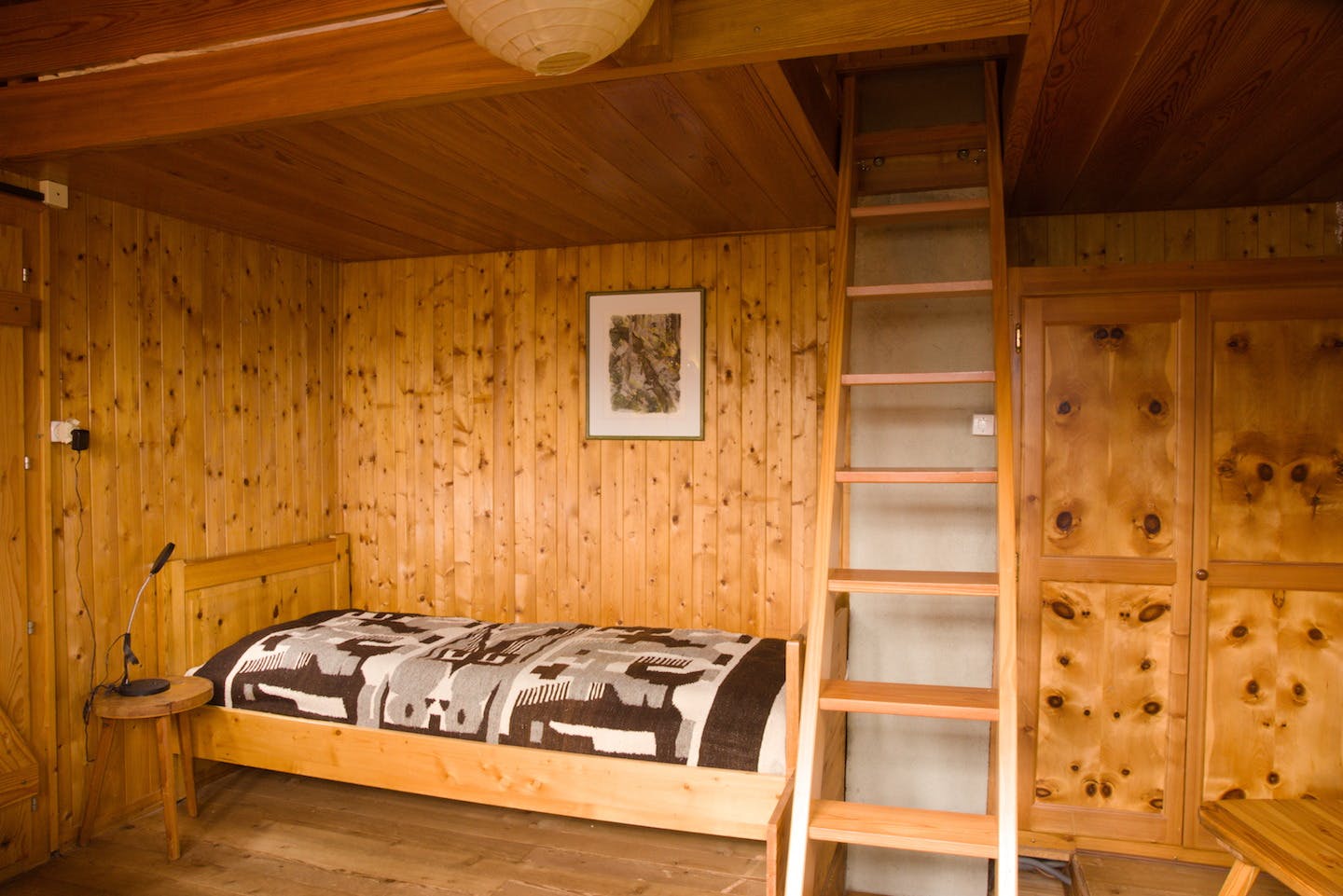 A typical chalet of the valley, ideal for a couple on a romantic getaway, but can accommodate up to 4 people (all sleep in the same space). There is a kitchen, a dining room and a WC-shower on the ground floor, and a living room with an open mezzanine on the first floor.